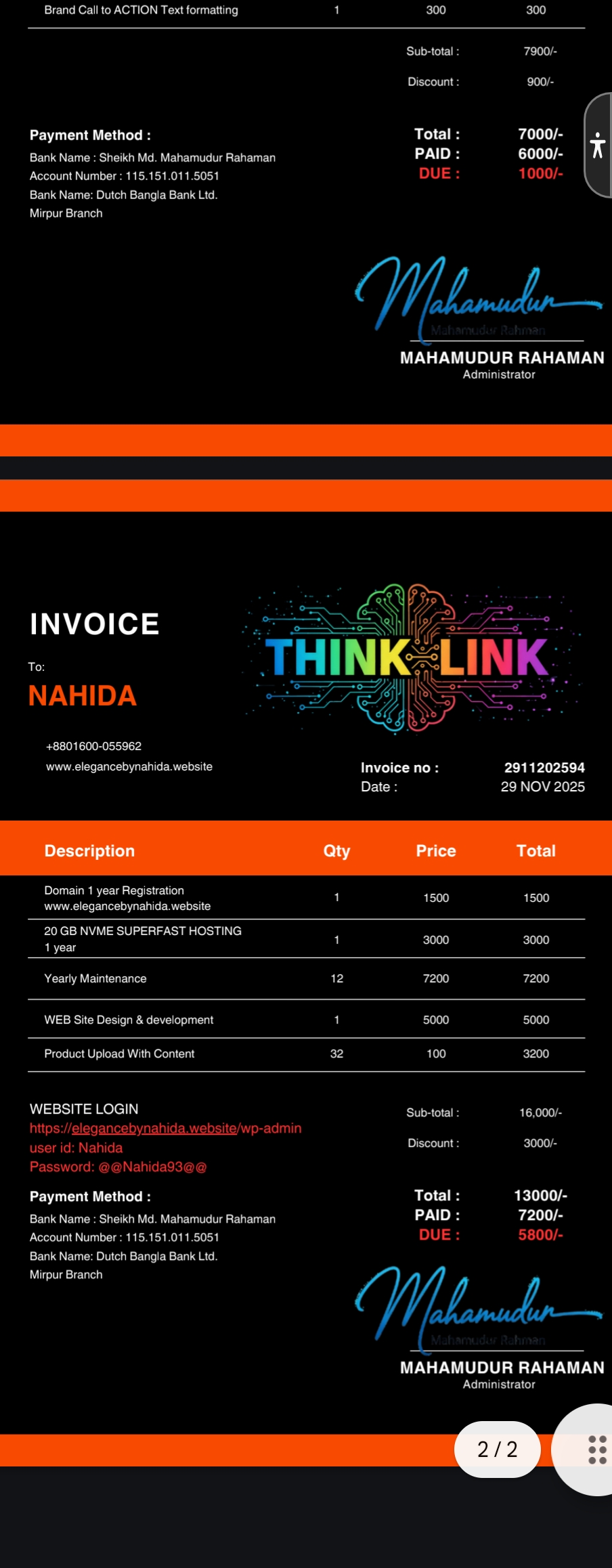 Convert visitors into paying clients instantly. Integrated WhatsApp Button and Tawk.to Live Chat allow clients to contact you with one click.